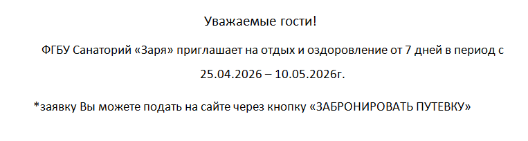 В санатории «Заря» вы можете пройти курс внутрисанаторного терренкура. Включен в стоимость коммерческой санаторно-курортной путевки. Информацию об услугах и размещении читайте на нашем сайте. Если остались вопросы, звоните по телефону +7 (87937) 2-11-07 с 8:00 до 17:00 в рабочие дни.
